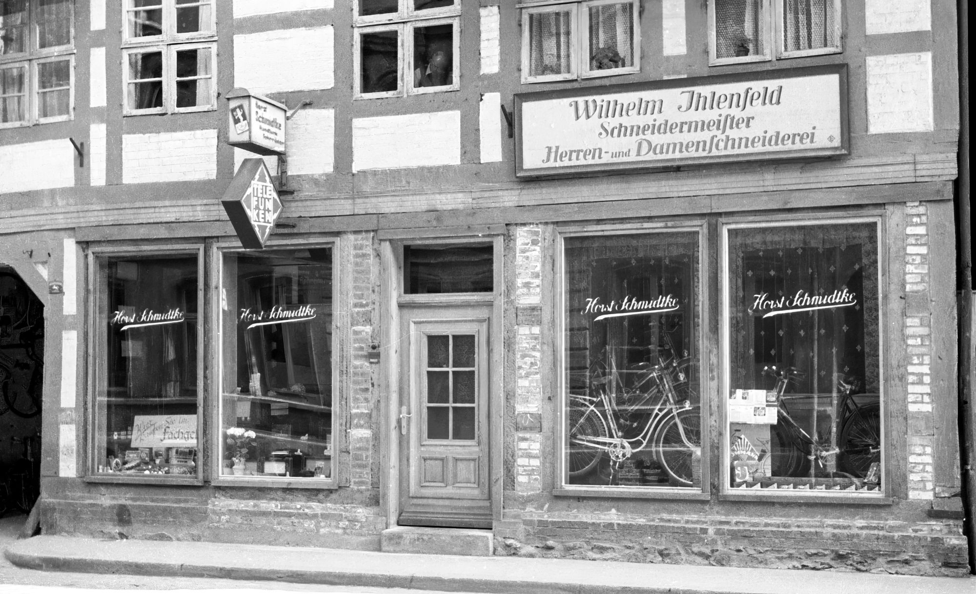 Im rechten Fensterbereich sind auch Fahrräder erkennbar. Horst Schmidtke wird sein Geschäftsfeld ausgeweitet haben.