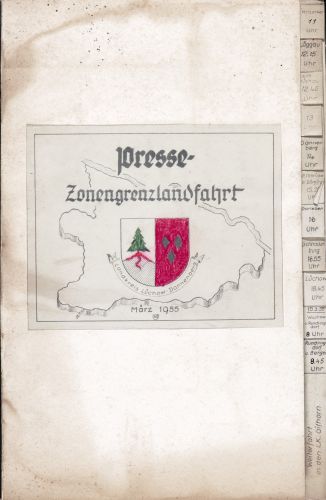 Die Route der Fahrt wurde durch den Architekten Horstmann in detaillierten, schön illustrierten Zeichnungen dokumentiert. Die 13 Seiten umfassende Mappe kann im Bereich Bibliographie als PDF herunter geladen werden. (Volltextsuche nach "Zonengrenzlandfahrt".)