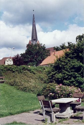 Blick vom Graben zur Kirche
