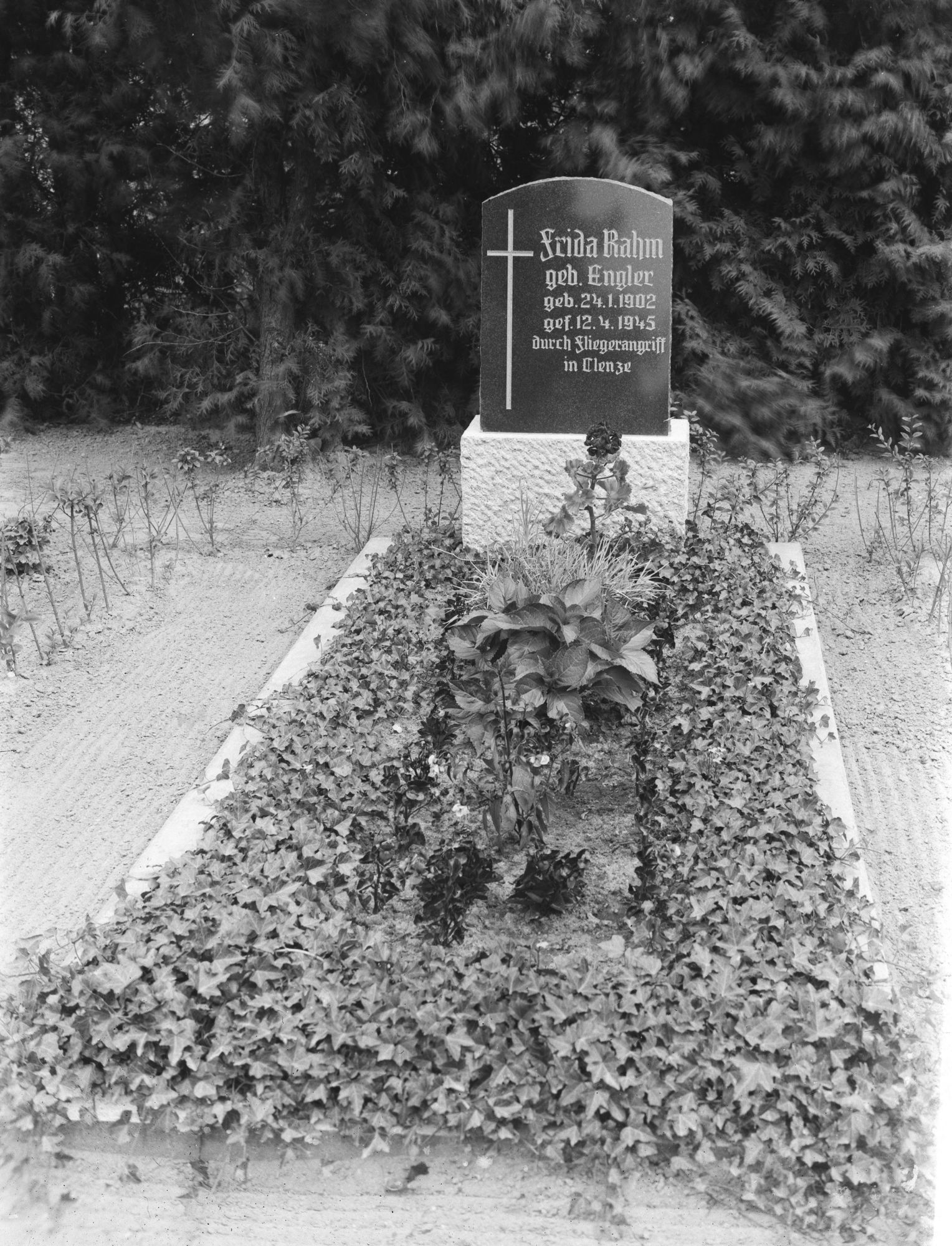 Frida Rahm wurde am 12. April 1945 in Clenze bei einem Fliegerangriff auf einen Flüchtlingstreck aus Ostpreußen getötet. Sie war die Ehefrau des Treckführers.