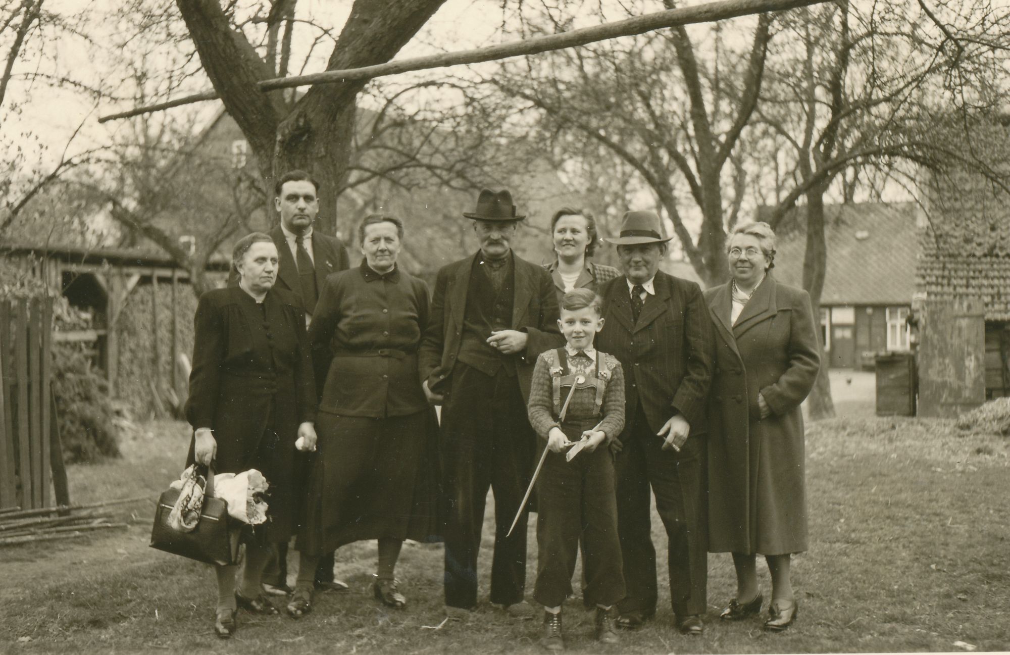 v.l.n.r.: Anna Koß; Walter Koß; Lina Schulz; Friedrich Schulz; Margarete Koß, geb. Schulz; vorne Wolfgang Koß; ??; ??; (leider kenn ich diese beiden Personen nicht).