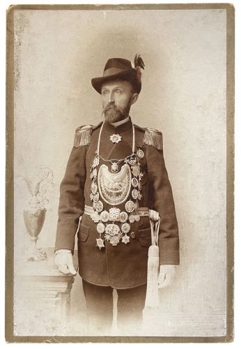 Um 1900 hat Carl Gerlach, nun selber ambitionierter "Hobbyfotogarf", die Königkette nochmal umgelegt und sich erneut fotografiert. Das Original-Glasnegativ existiert noch. (ID 44115)