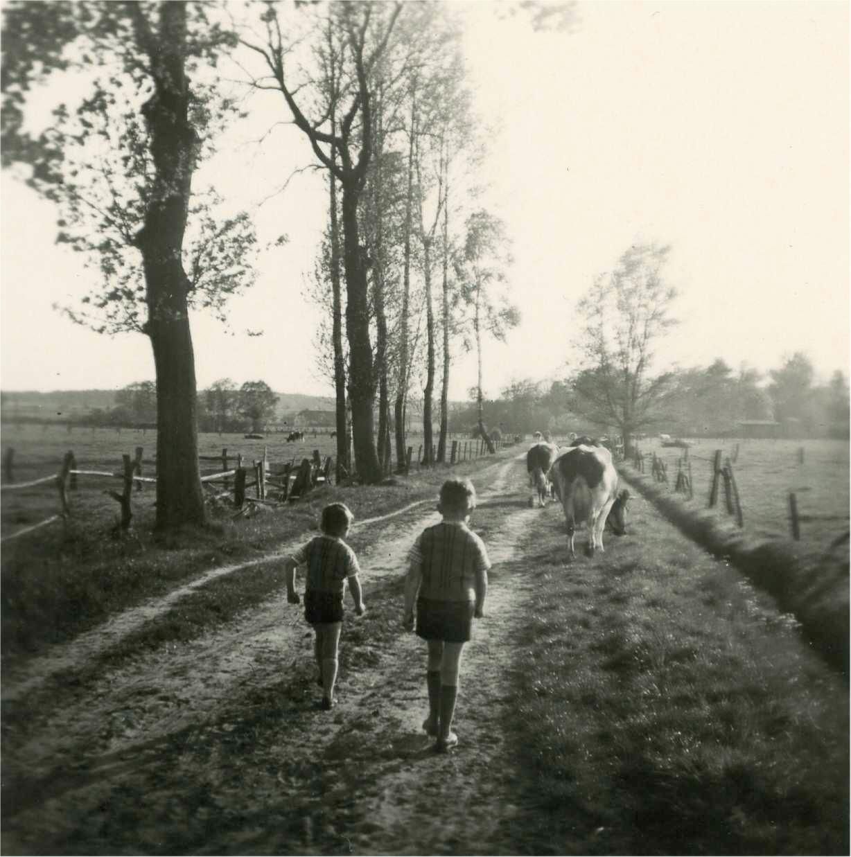 Kühe hüten, besonders zum Abgrasen der Wegränder, war oft Aufgabe der Kinder.